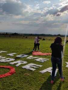 Sorprende a esa persona especial de una manera única y genuina con un letrero gigante en el aterrizaje con letras blancas en tela y corazones rojos donde podrás colocar el mensaje que desees dedicar.
